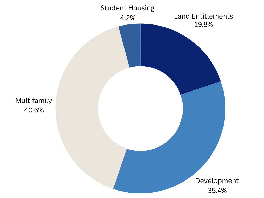 Fund I targeted residential investments across sectors of multifamily, development, student housing, and land entitlements. The portfolio achieved diversification across eight managers, nine holdings, and exposure to ten states.